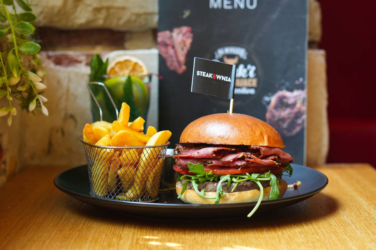 W menu królują steki i burgery. Burgery tworzymy wyłącznie z mięsa wołowego, z oryginalnymi dodatkami, które podkreślają jego charakter.