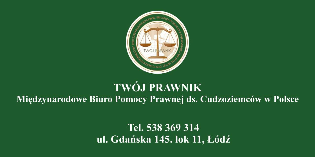 TWÓJ PRAWNIK – Międzynarodowe Biuro Pomocy Prawnej ds. Cudzoziemców w Polsce to partner oferujący kompleksową pomoc prawną mieszkańcom oraz cudzoziemcom na terenie całej Polski, Ukrainy oraz w krajach UE. Zespół Międzynarodowego Biura Pomocy Prawnej składa się z adwokatów, prawników, tłumaczy oraz notariuszów wykonyjacych profesjonalnie swój zawód w Polsce, Ukrainie.