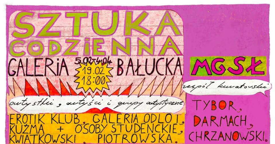 Od graffiti grupy EROTIK KLUB, przez sztukę w ujęciu terapeutycznym galerii Odlot, fotografię miejską Alicji Piotrowskiej, plastykę jako środek badawczy Profesor Ingi Kuźmy i jej studentów, aż po uznane i wielokrotnie nagradzane malarstwo Tomasza Kwiatkowskiego. Pomimo zasadniczych różnic, każda z tych tendencji pokazuje codzienne i poważne traktowanie własnej twórczości i udowadnia, że nie jest takowe zarezerwowane wyłącznie dla profesjonalistów i akademików.