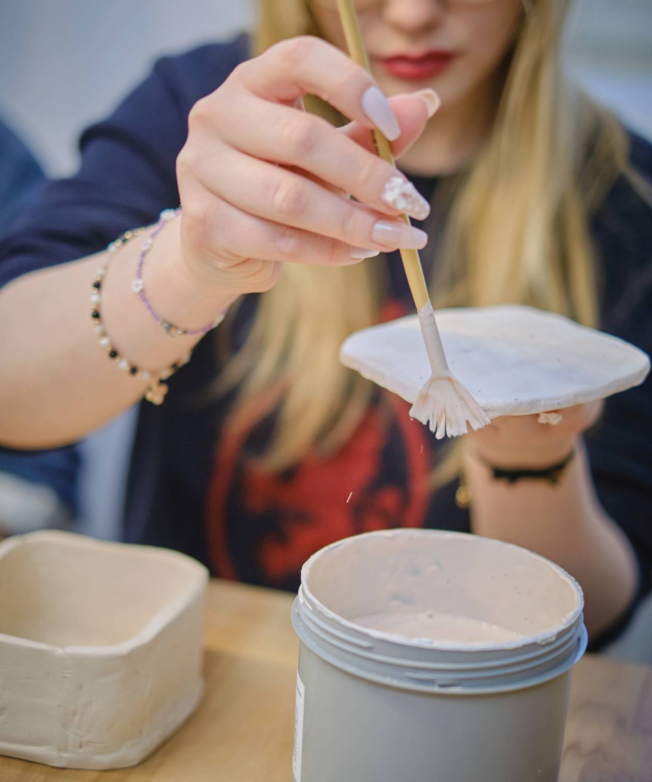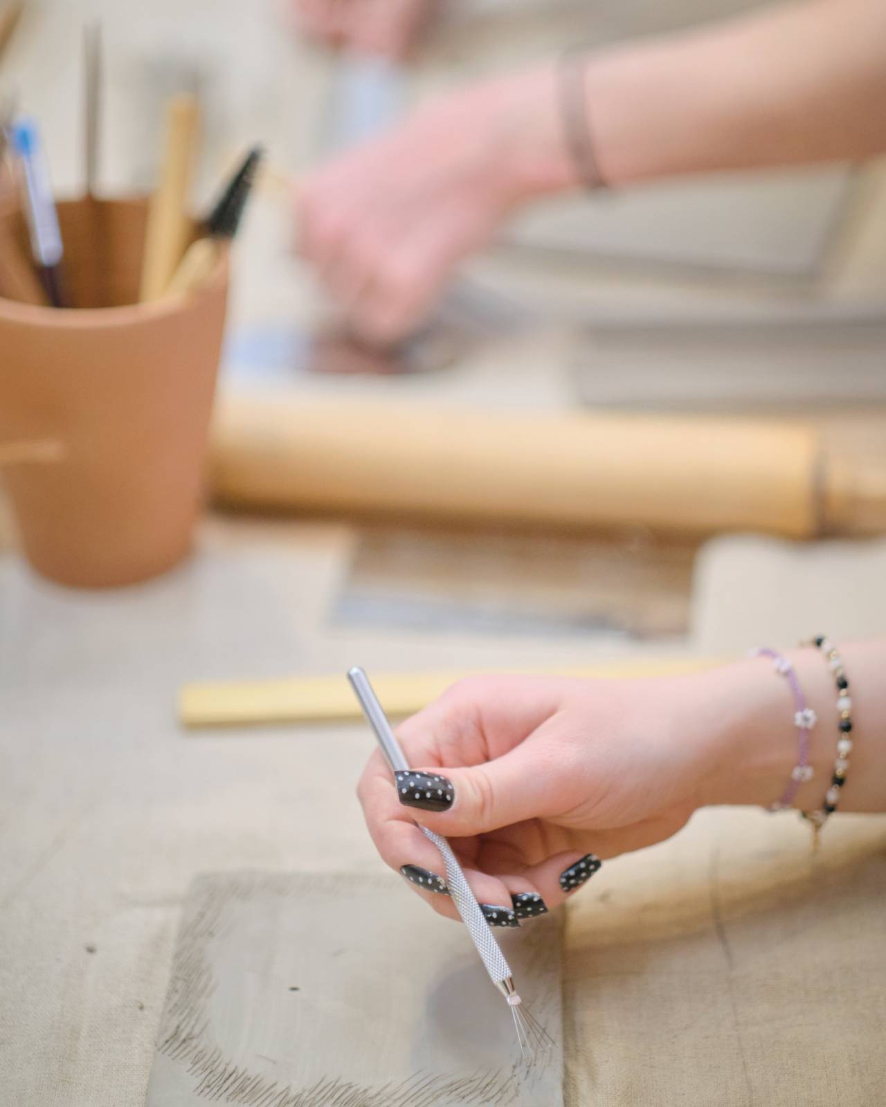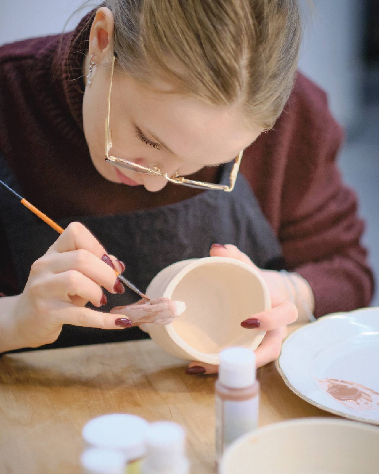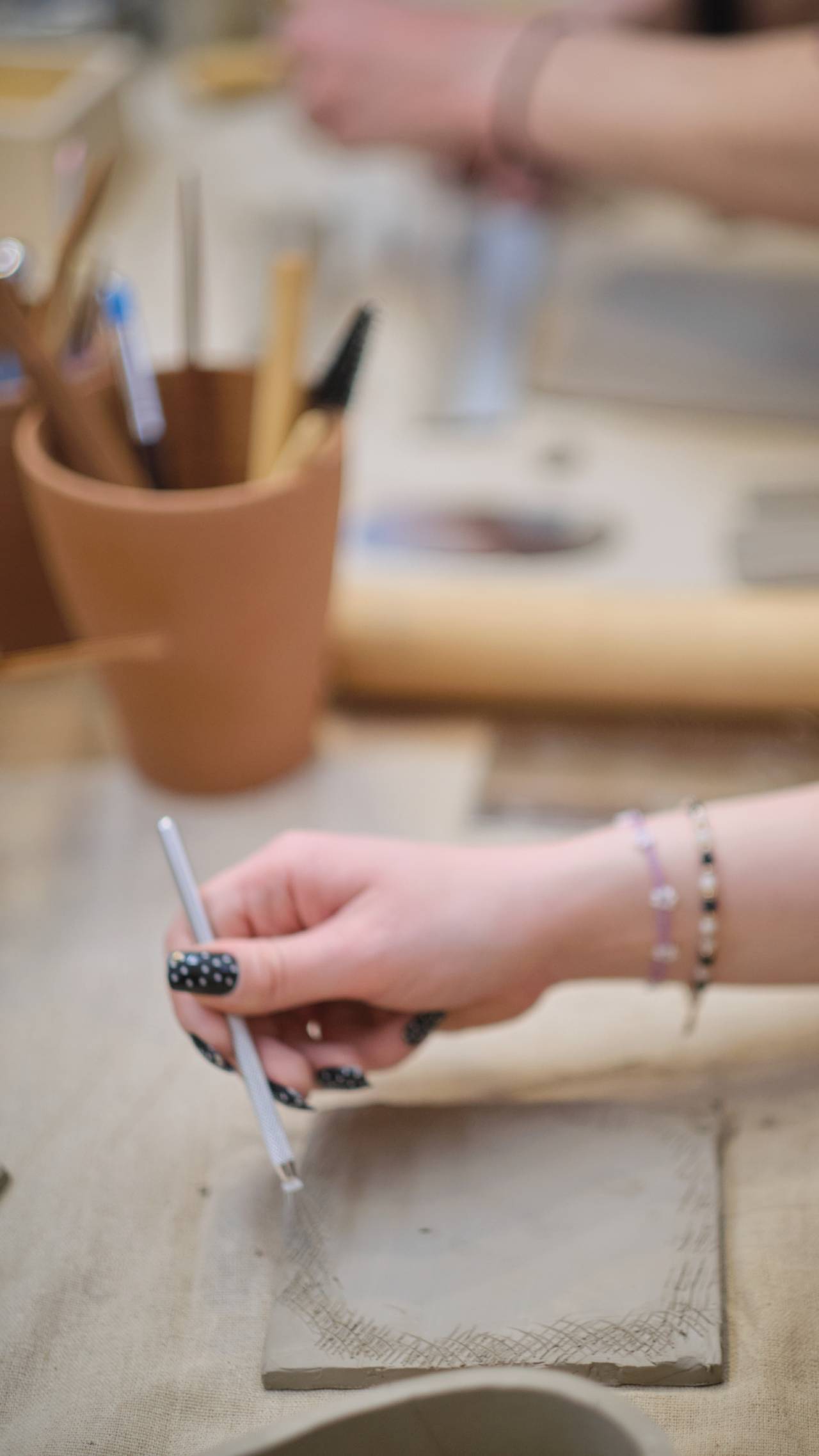 Prowadzę kameralną, autorską pracownię ceramiczną w Pasażu Róży, w której tworzę własną kolekcję i prowadzę warsztaty dla osób początkujących. To spokojna, wspierająca przestrzeń dla tych, którzy chcą spróbować pracy z gliną w małej grupie - maksymalnie 7 osób. W ofercie znajdują się zarówno warsztaty tematyczne, jak i zajęcia otwarte, podczas których można ulepić własny, dowolny projekt. W cenie warsztatów zawarty jest nielimitowany dostęp do gliny, farb i szkliw, moja pomoc na każdym etapie, kontrolowane suszenie, dwa wypały oraz drobny poczęstunek, kawa i herbata. Zależy mi na tworzeniu miejsca skupionego na procesie, swobodzie i radości tworzenia — przestrzeni, w której jest miejsce na eksperyment, naukę i ceramiczne odkrycia. Zajęcia odbywają się najczęściej w piątki, soboty i niedziele.