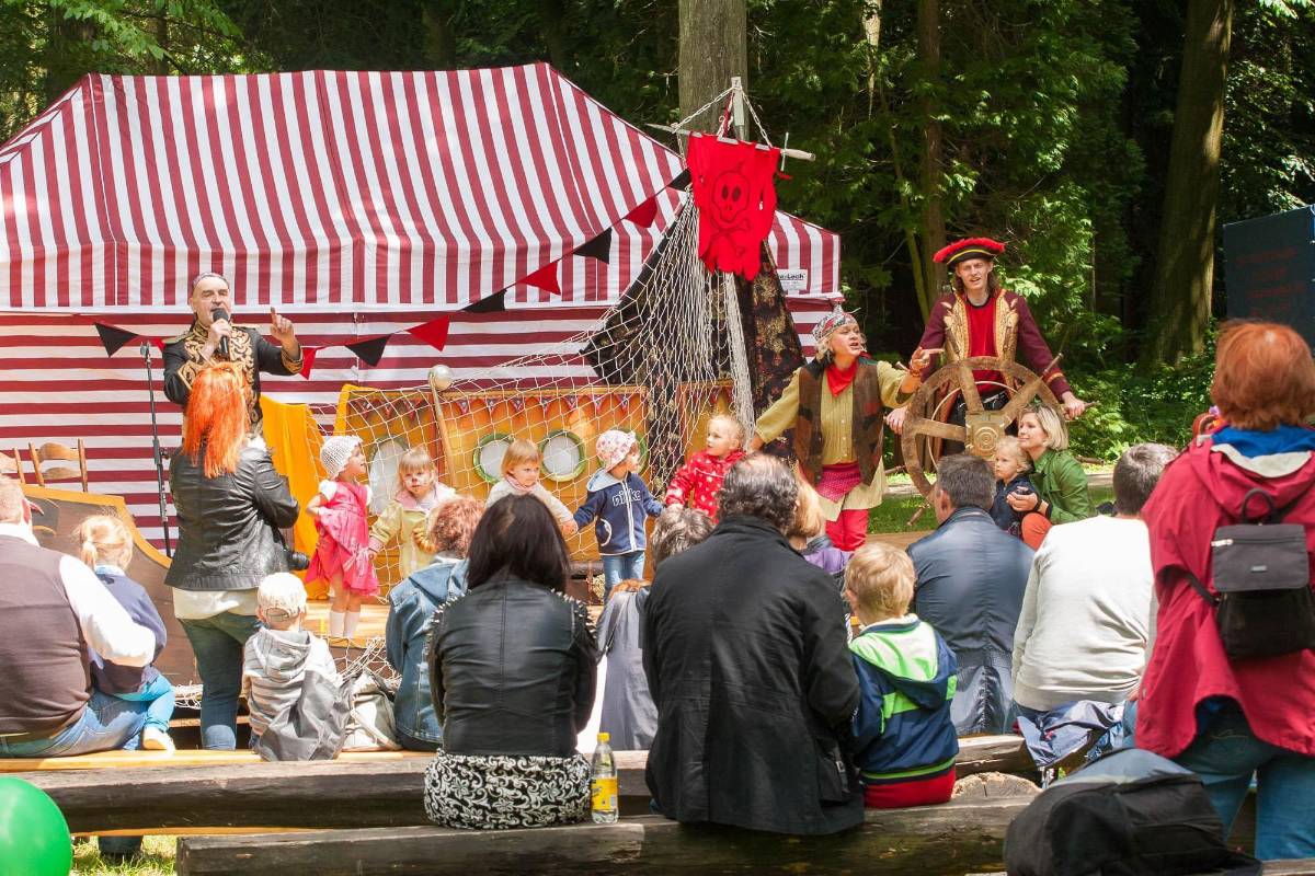 Na każdym z lądów piraci muszą wykonać pewne sprawności, tak aby przyspieszyć poszukiwania skarbów. W ten oto sposób pojawia się pretekst do wspaniałej, międzypokoleniowej zabawy na pokładzie pirackiej łajby – czyli scenie teatralnej.
